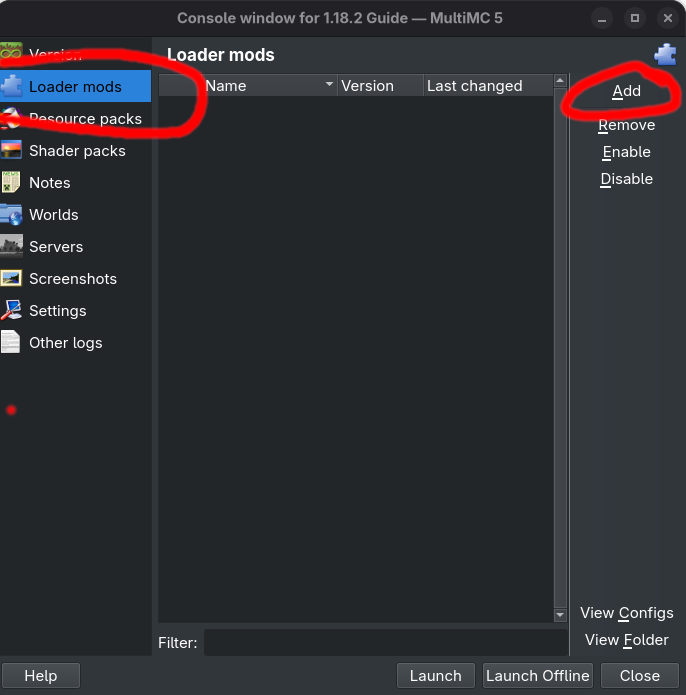 - Daarna ga je naar Loader mods en klik op add vervolgens zoek de uit gepakte mods op en selecteer deze (niet de folder)